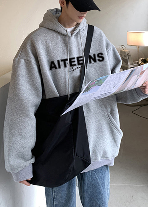 Classy Grey Hooded Letter Warm Fleece Mens Sweatshirts Spring YQ023