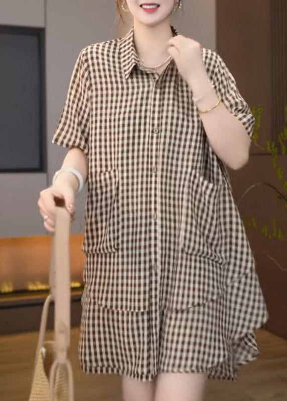 Bohemian Brown Oversized Plaid Cotton Two Pieces Set Summer