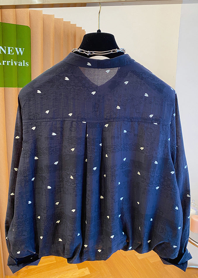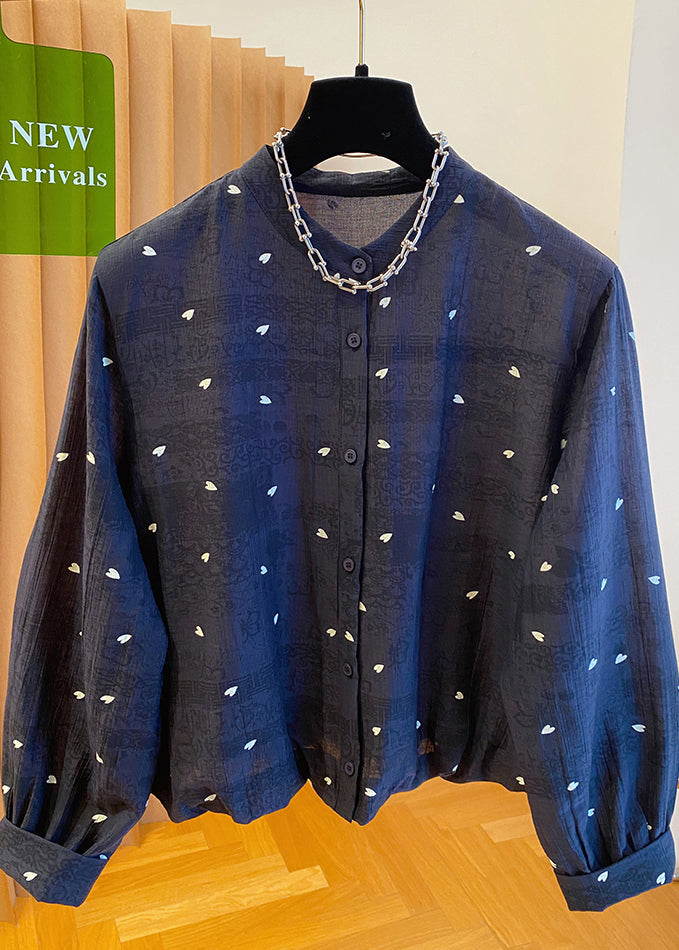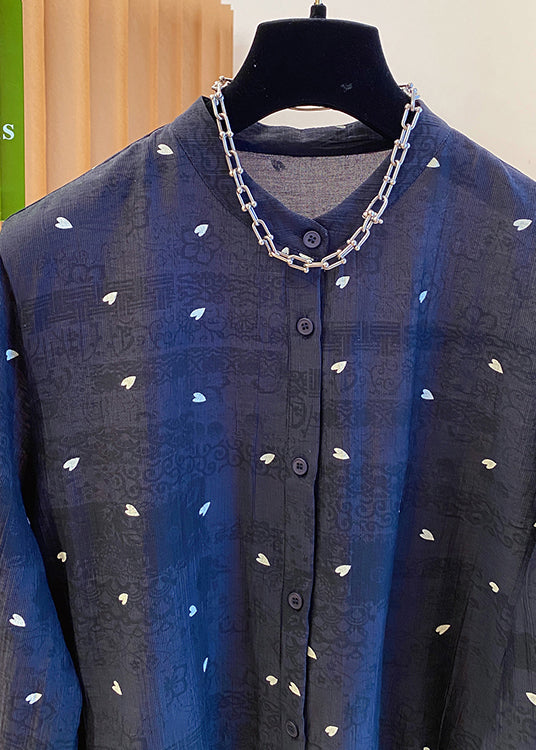Cotton Neck Blouses Black Jacquard Button Women Fall O