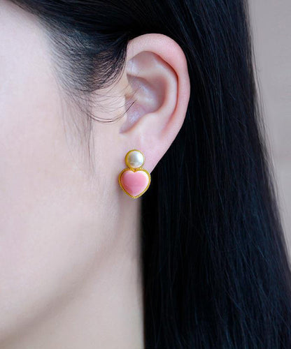 Cute Pink Sterling Silver Overgild Love Pearl Stud Earrings TX036