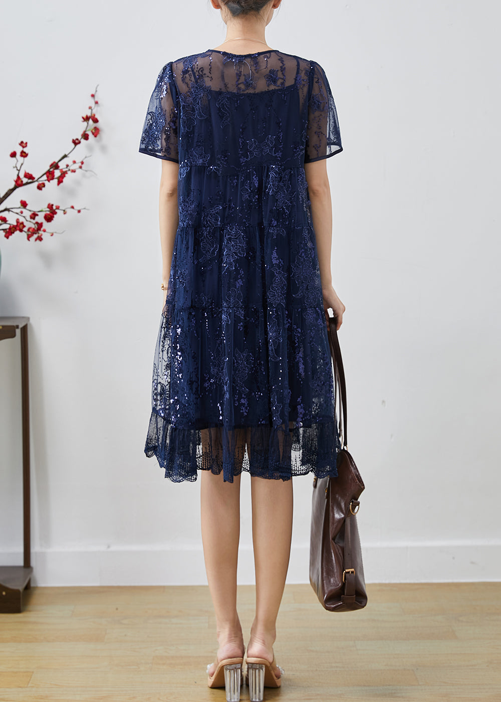Elevate your summer wardrobe with our DIY Navy Sequins Embroidered Tulle Bow Dress. This luxurious dress boasts intricate sequin embroidery and a beautiful tulle bow, making it a true statement piece. Perfect for any occasion, create your own unique style with this stunning dress.