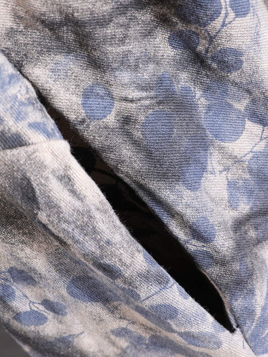 Dress 100%Cotton Women Autumn Print Collar Stand Retro