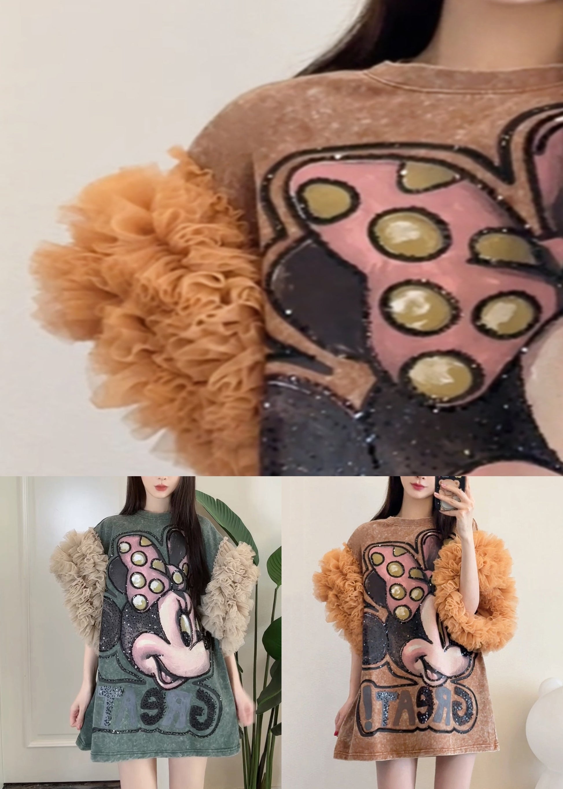 Loose Khaki Ruffled Tulle Patchwork T Shirts Dresses Summer