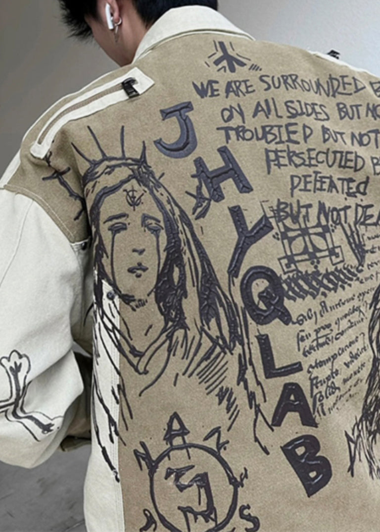 Fall Patchwork Cotton Coats Print Mens Men Apricot DIY