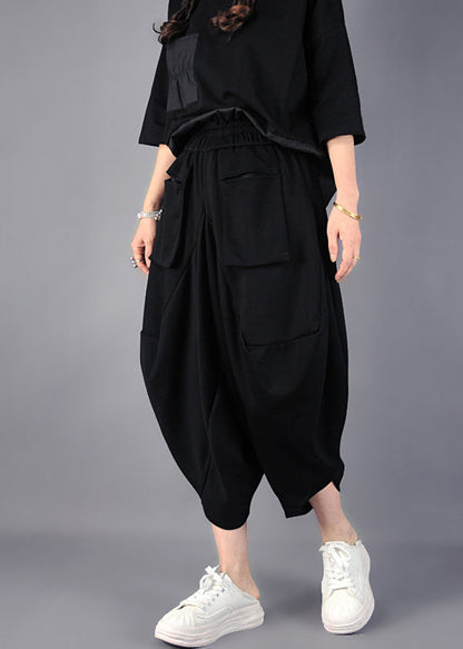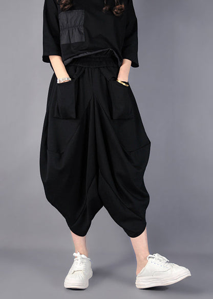 Fashion Black Asymmetrical Cotton Harem Pants Spring YO021