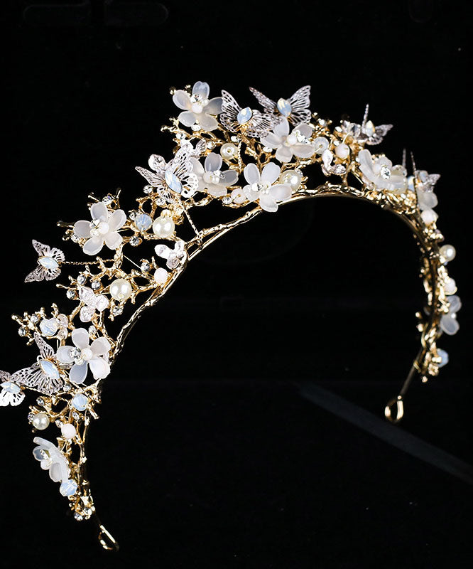 This elegant crown for girls features a fashion-forward design with light gold overgild and sparkling crystal zircon accents, as well as a delicate butterfly and floral motif.