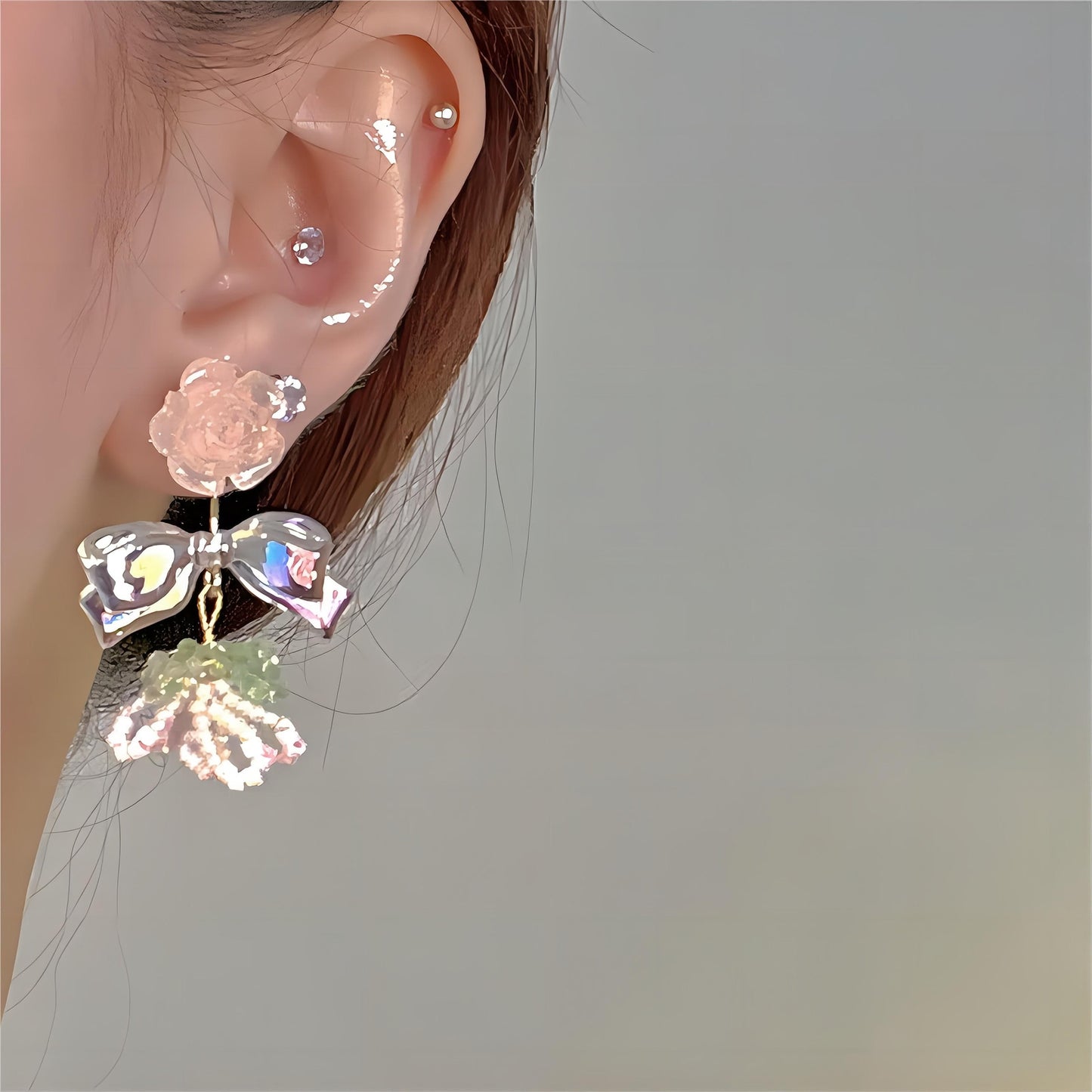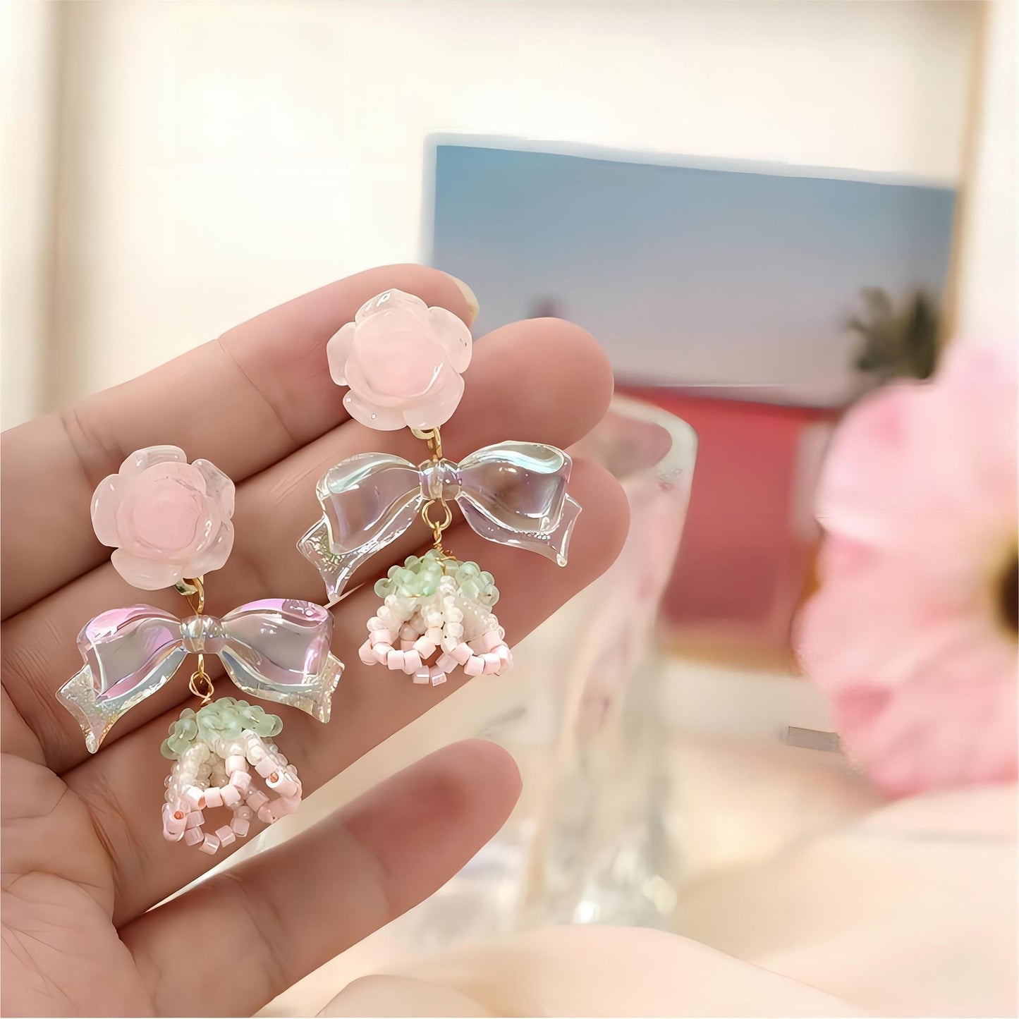 Add a touch of whimsy to your outfit with our Floral Bowknot Rose Earrings! These darling accessories feature a delicate floral design combined with a playful bowknot shape. Perfect for adding a fun and flirty vibe to any look. 🌸🎀