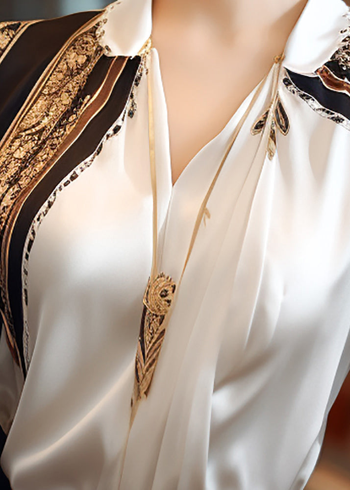 Indulge in the luxurious elegance of our French Apricot Peter Pan Collar Print Patchwork Chiffon Shirts for the perfect addition to your spring wardrobe. Impeccably crafted with intricate details and a sophisticated design, these shirts are a must-have for any fashion-forward individual. Elevate your style with the finest materials and effortless grace.