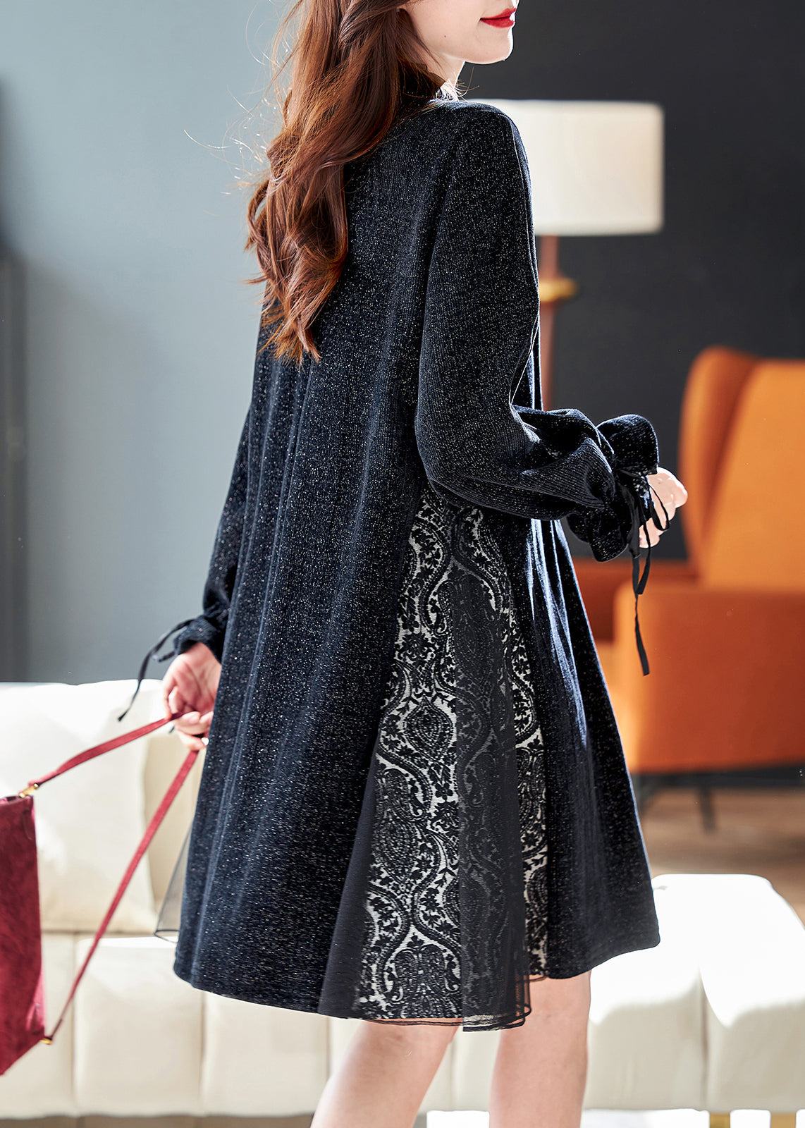 Elevate your wardrobe with our French Black Sequins Tulle Patchwork Dress featuring elegant butterfly sleeves. This exquisite design showcases a delicate balance of black sequins and tulle, creating a luxurious and unique piece.