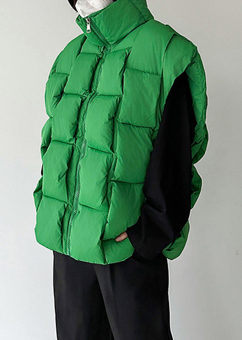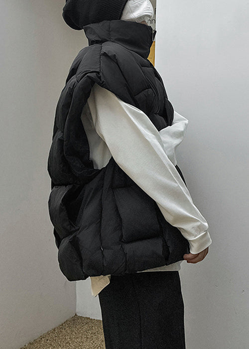 French Black Stand Collar Zip Up Cotton Filled Men Waistcoat Sleeveless EQ025