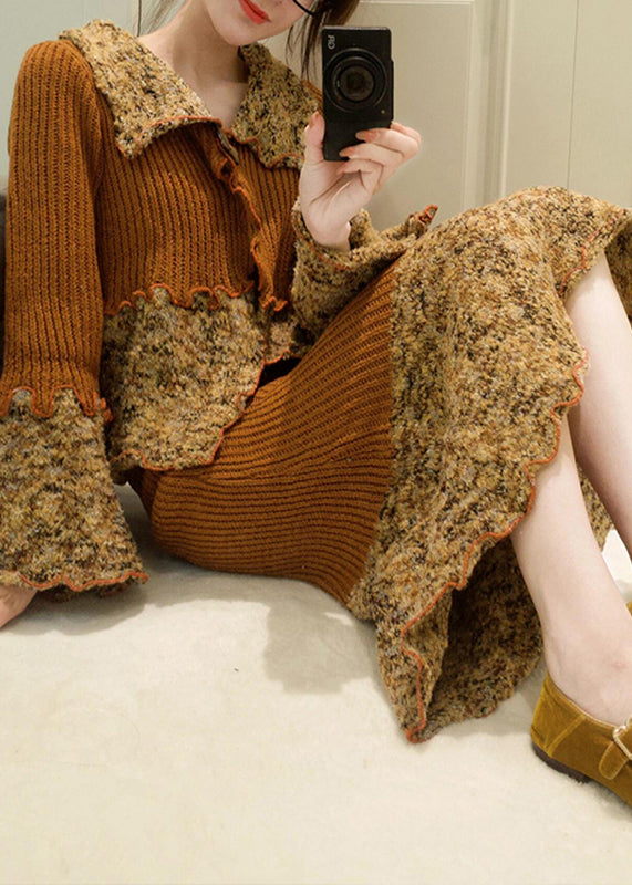 Experience elegance and luxury with our French-inspired Peter Pan Collar Print Patchwork Cotton Knit Cardigans And Maxi Skirts Two Pieces Set, perfect for the fall season. Indulge in sophistication and exclusivity with this premium set.