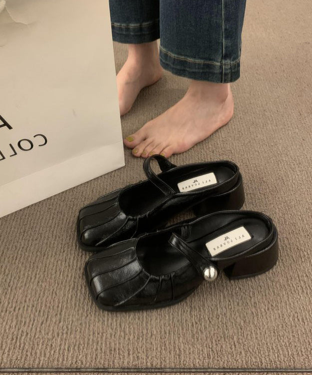 French Silver Pleats Chunky Faux Leather Slide Sandals OI076