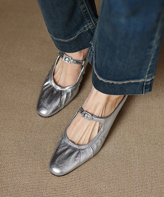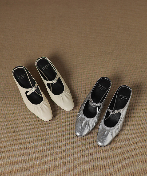 French Wrinkled Splicing Chunky Heel Beige Sheepskin