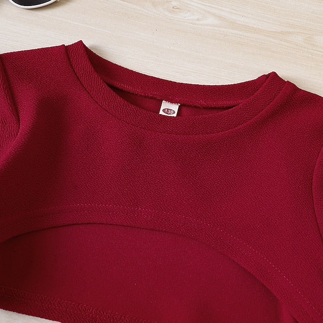 Gender: Girls', Age Group: Kids, Style: Adorable, Daily, Occasion: Wedding, Performance, Kids Apparel: Dress Suits, Quantity: 2 Pieces, Fabric: Cotton, Pattern: Color Block, Sleeve Length: Long Sleeve, Age: 7-13 Years, Season: Fall, Winter, Spring, Look After Me: Machine wash, Top Length: Short, Elasticity: Micro-elastic, Dress Length (cm): Midi, Fit Type: Regular Fit, Listing Date: 09/27/2023,