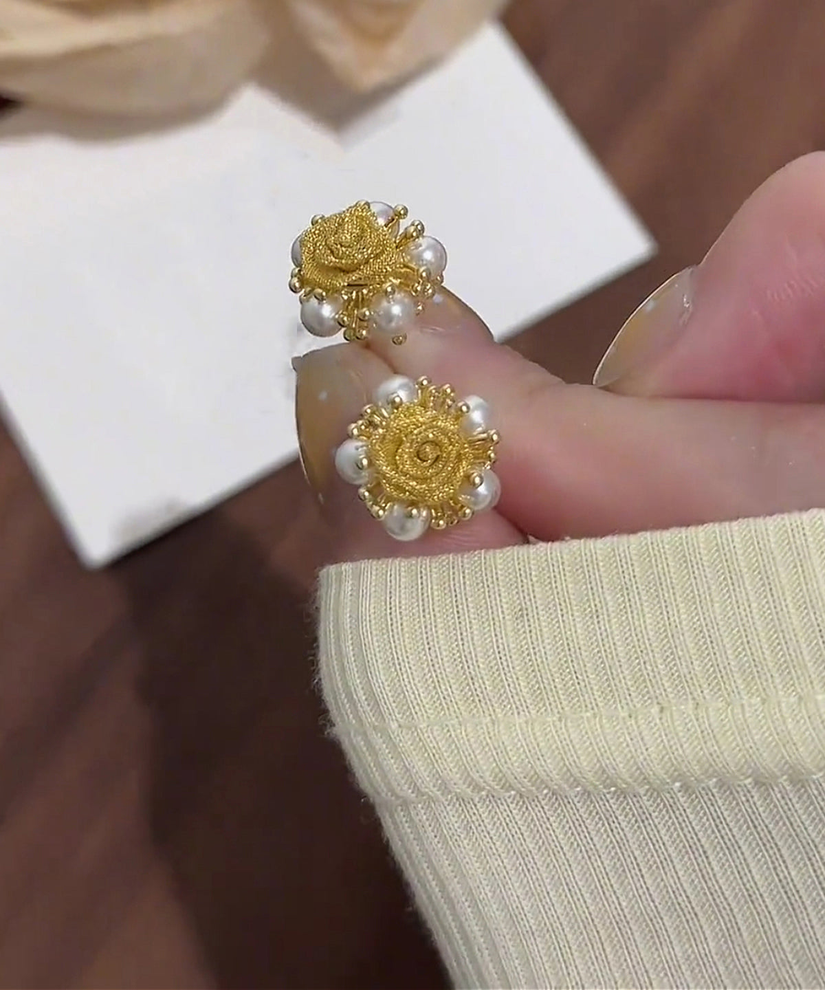 Gold Copper Graphic Stud Alloy Earrings Pearl Vogue
