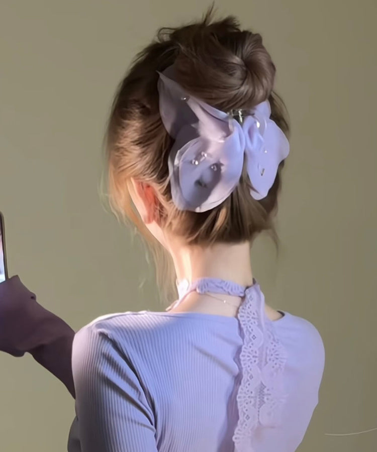 Hairpin Zircon Butterfly Tulle Beige Cute
