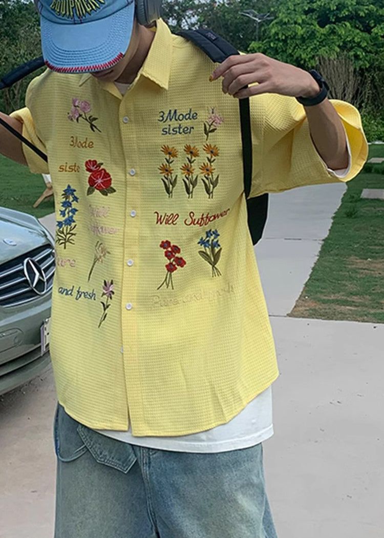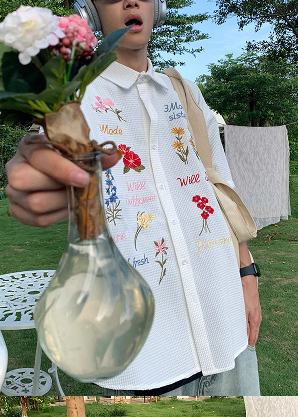 Handmade Blue Embroideried Plaid Cotton Mens Shirt Summer