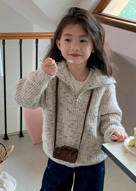 Indulge in the refined elegance of our Handmade Light Grey Zippered Patchwork Cotton Knit Girls Sweater Tops for Spring, crafted with care and attention to detail. Embrace the beauty of the intricate cotton knit and the luxurious comfort of the zippered design. Elevate your little girl's wardrobe with this exclusive piece, perfect for any occasion.
