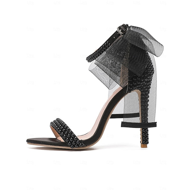 Heels Pearl with White Bow and Women's Embellished Wedding