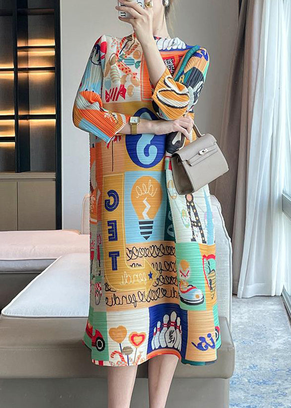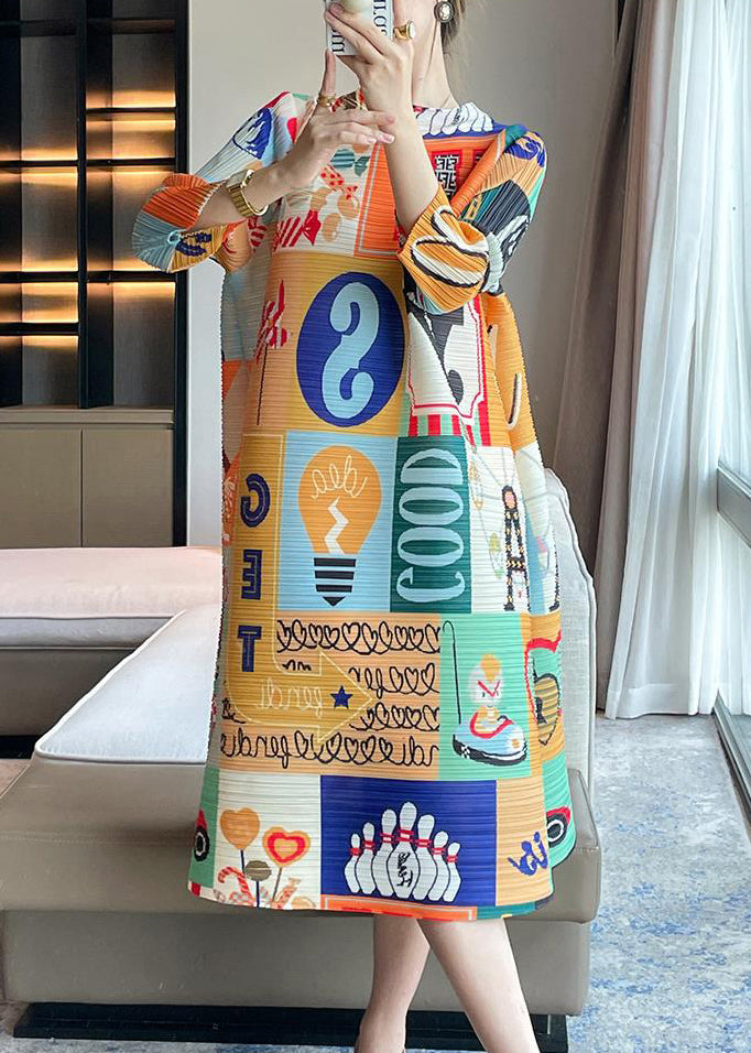 Italian Yellow O-Neck Print Maxi Dresses Bracelet Sleeve GH1051