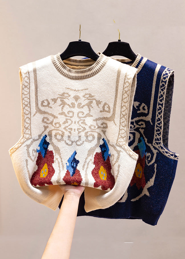 Jacquard Navy O Neck Cozy Knit Vest Sleeveless YJ011