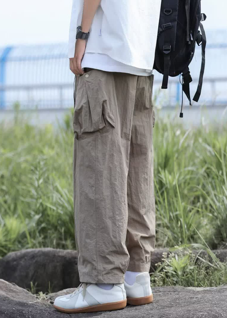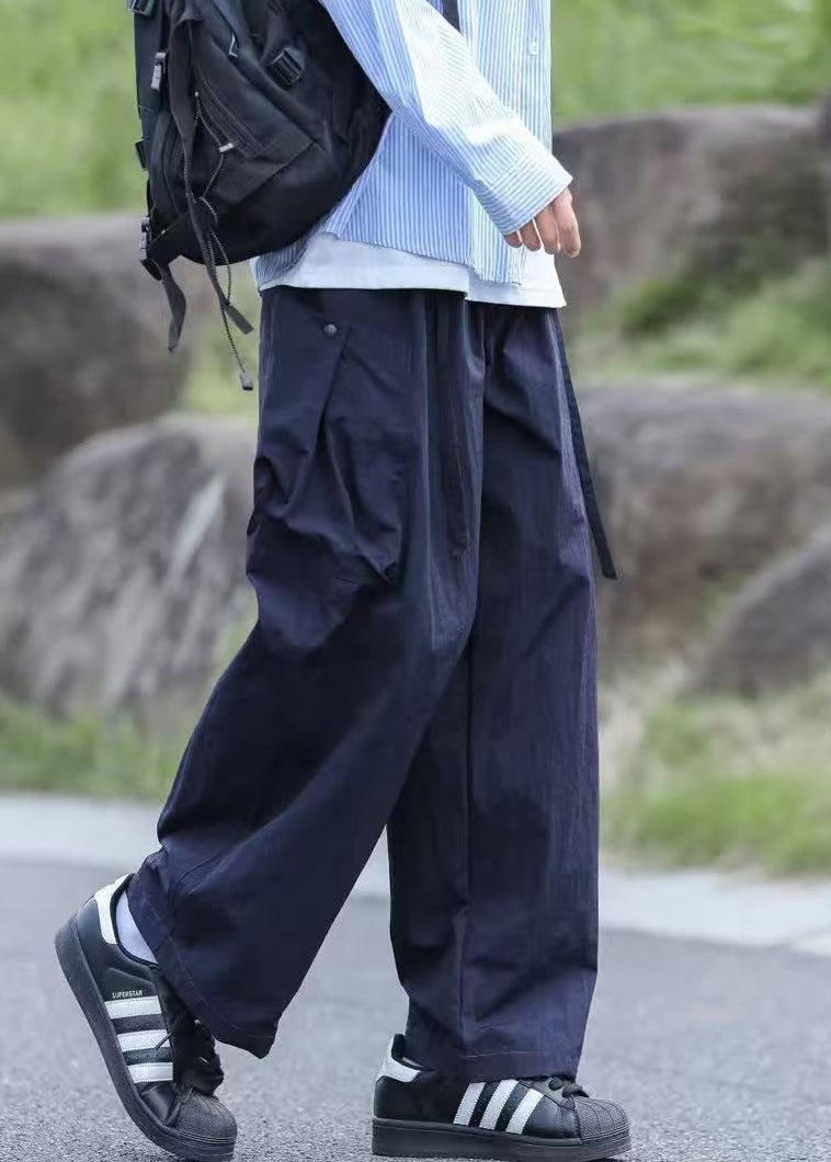 Boutique Navy Pockets Lace Up Solid Cotton Men Pants Summer