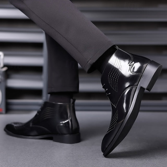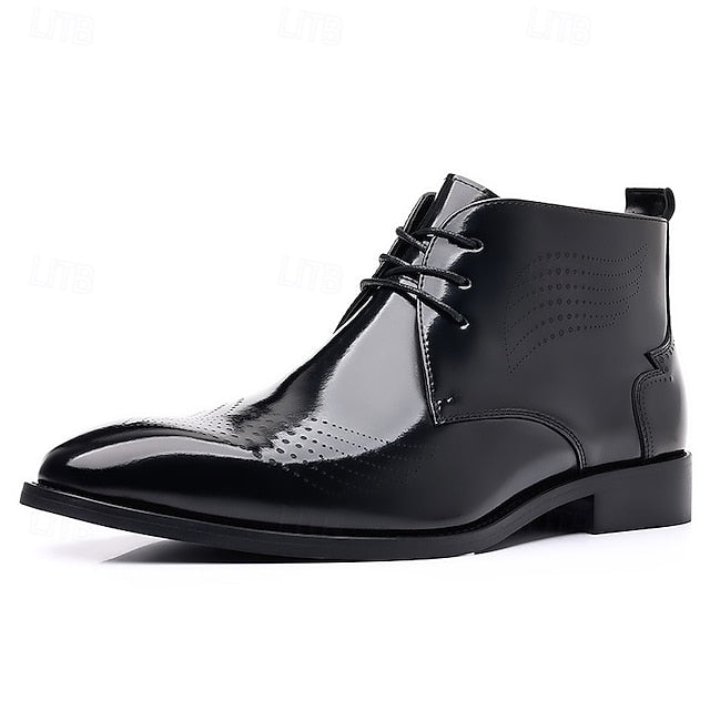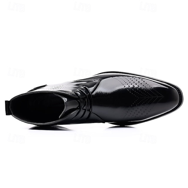 Leather Ankle Men's Faux Glossy Burgundy Wingtip Brogue