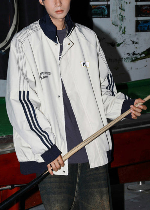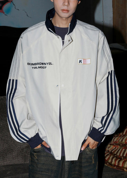 Letter Cotton Men Loose Coat Spring Striped Light Grey