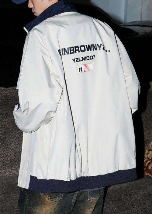 Loose Light Grey Striped Letter Cotton Men Coat Spring