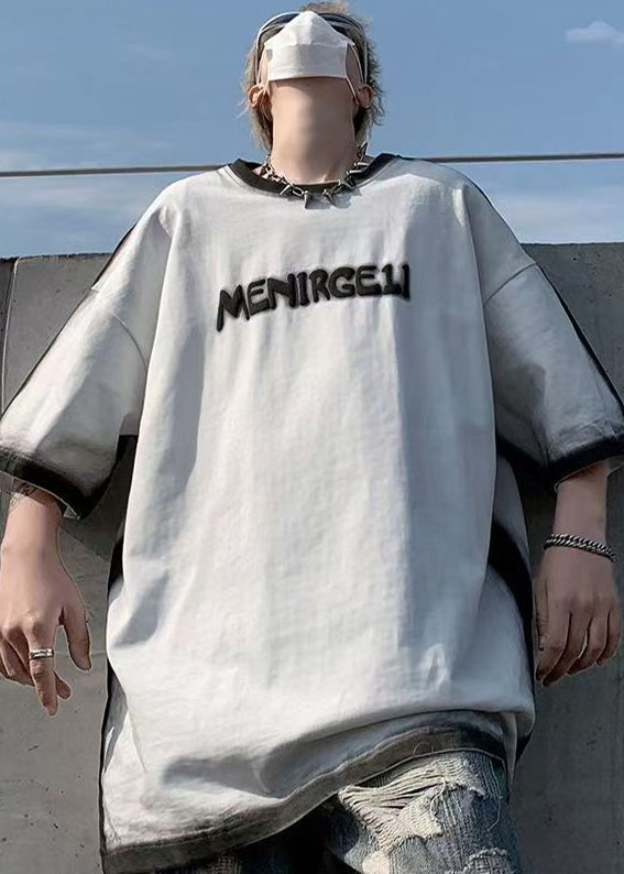 Italian White Tie Dye Letter Jacquard Cotton T Shirts Summer