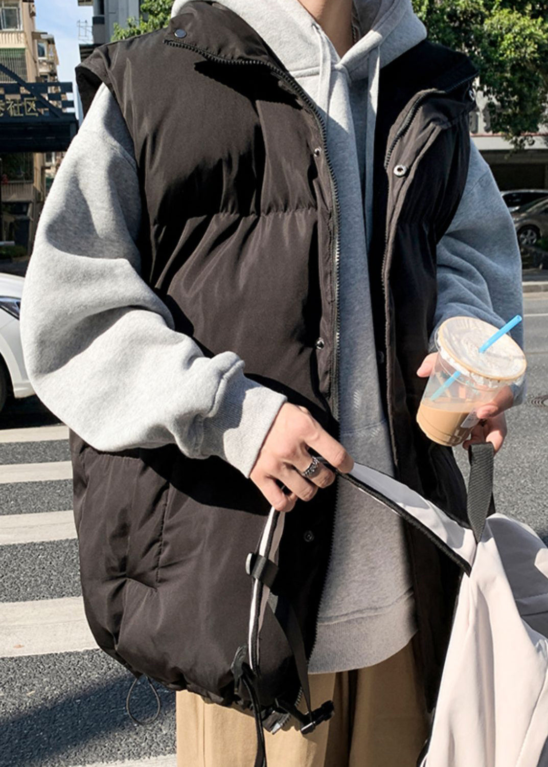 Loose Beige Zippered Pockets Drawstring Cotton Filled Men Waistcoat Winter RN014