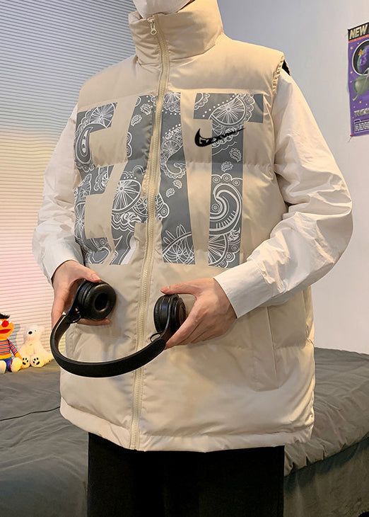 Loose Khaki Print Pockets Cotton Fille Mens Waistcoat Winter EQ031