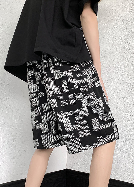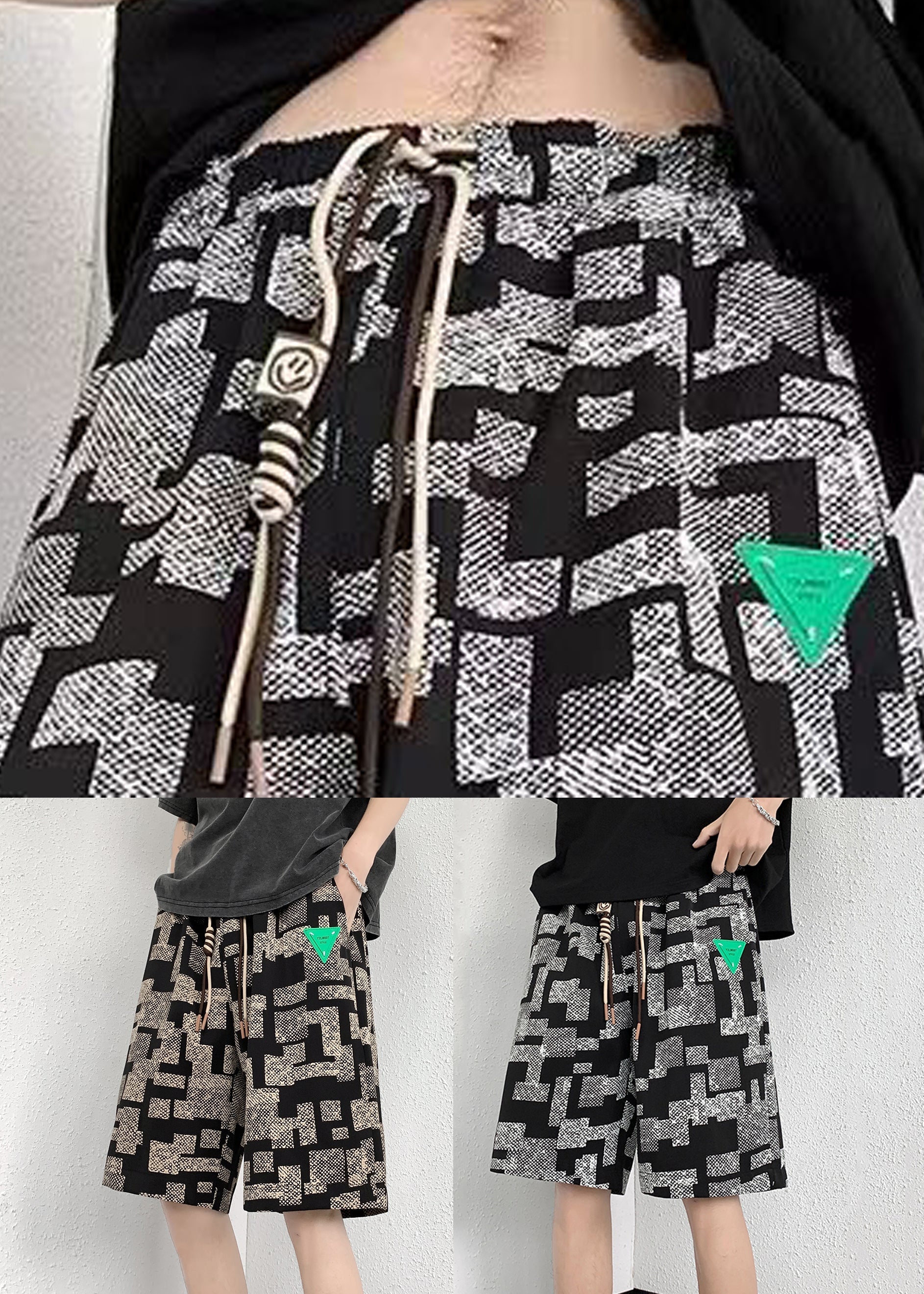 French White Plaid Lace Up Cotton Men Shorts Summer