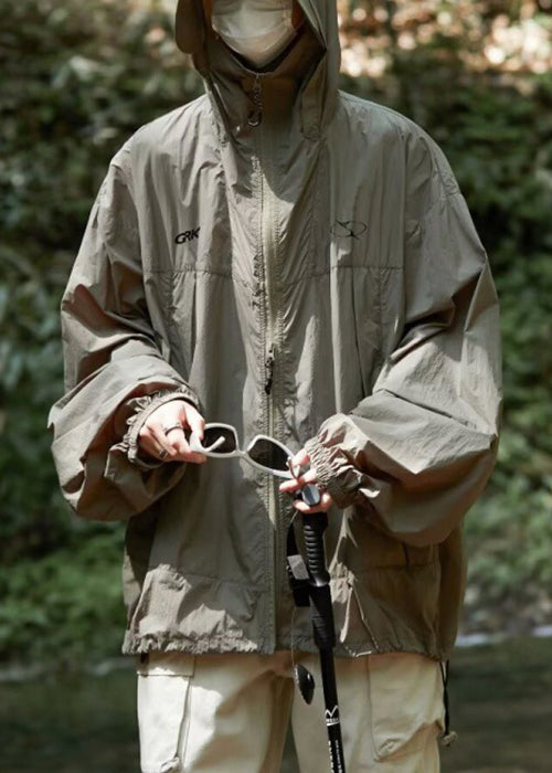 Casual Black Hooded Zippered Print Men UPF 50+ Coat Summer