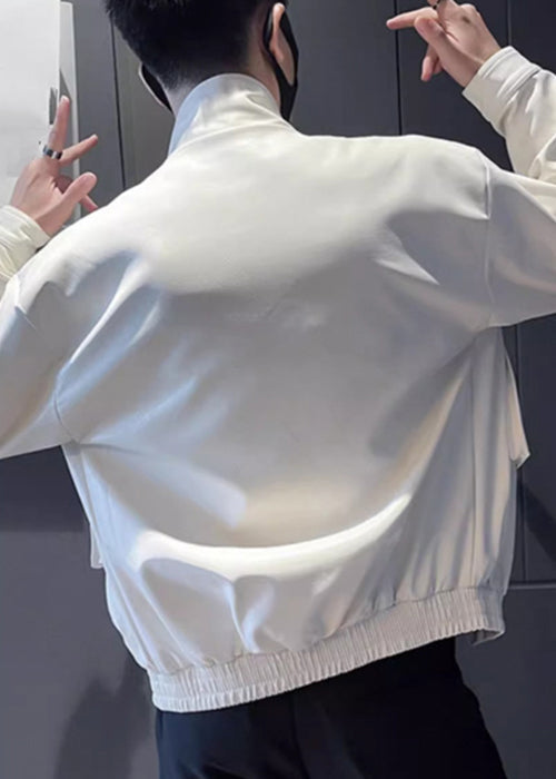 Modern Army Green Stand Collar Pockets Faux Leather Men Coats Spring RN018