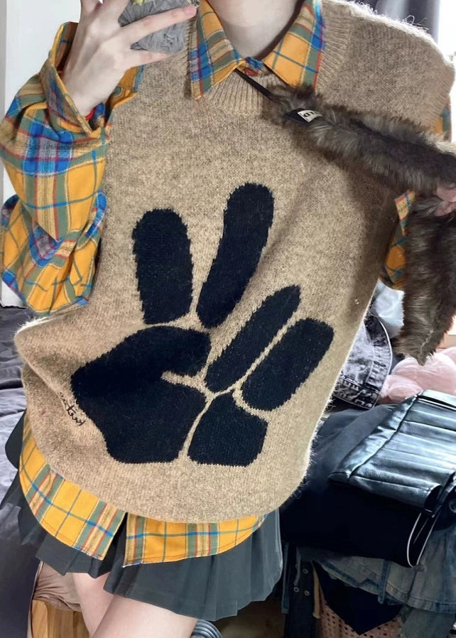 Modern Yellow Plaid Knit Vest And Shirts Two Pieces Set Spring TN046
