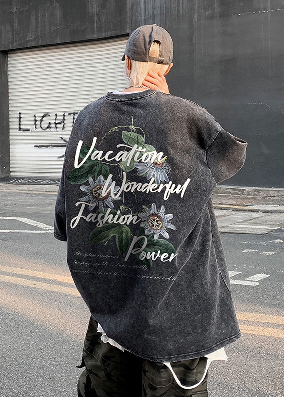 Loose Grey O Neck Print Cotton Men T Shirt Summer