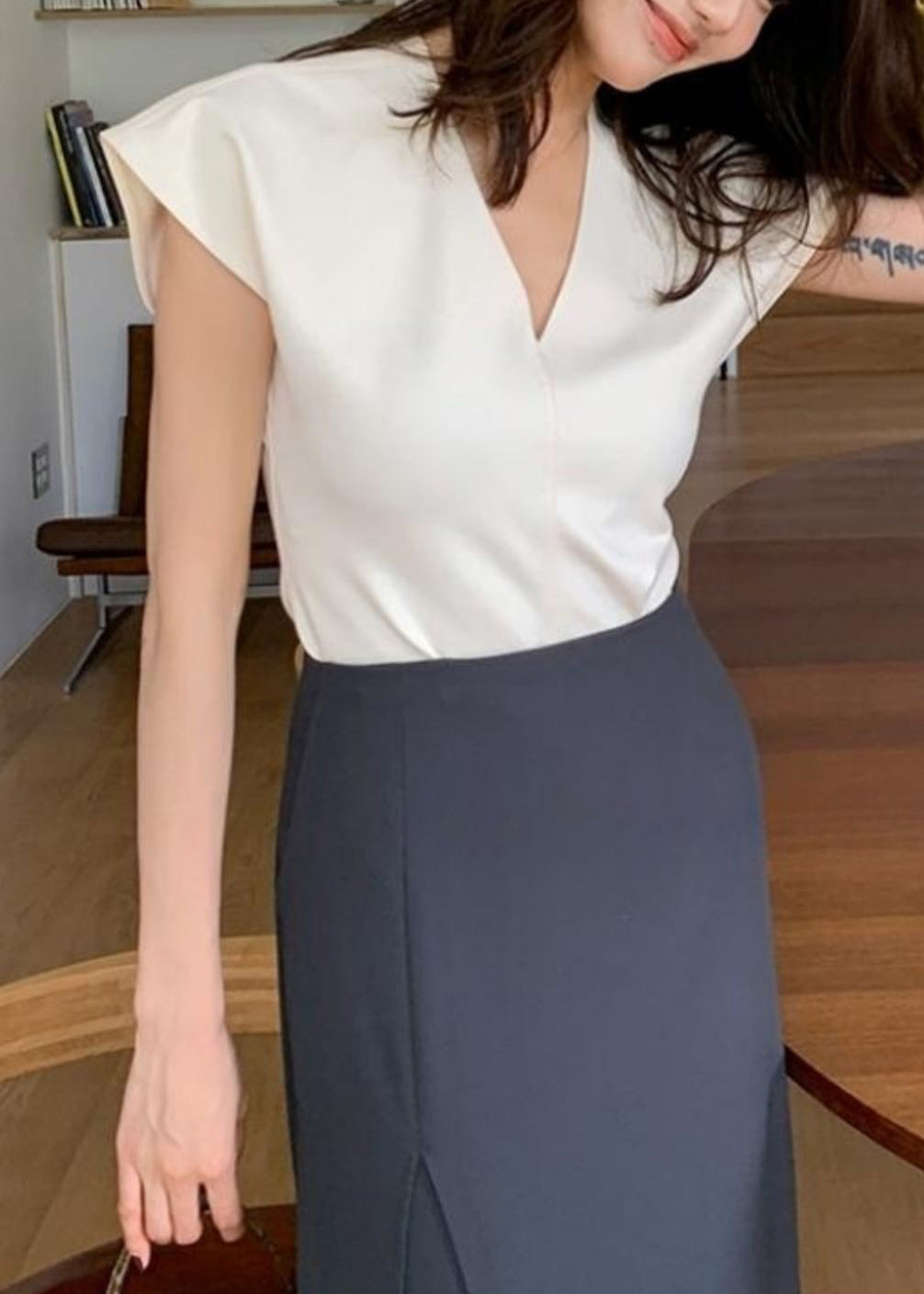 Simple Rose V Neck Solid Cotton T Shirts Summer