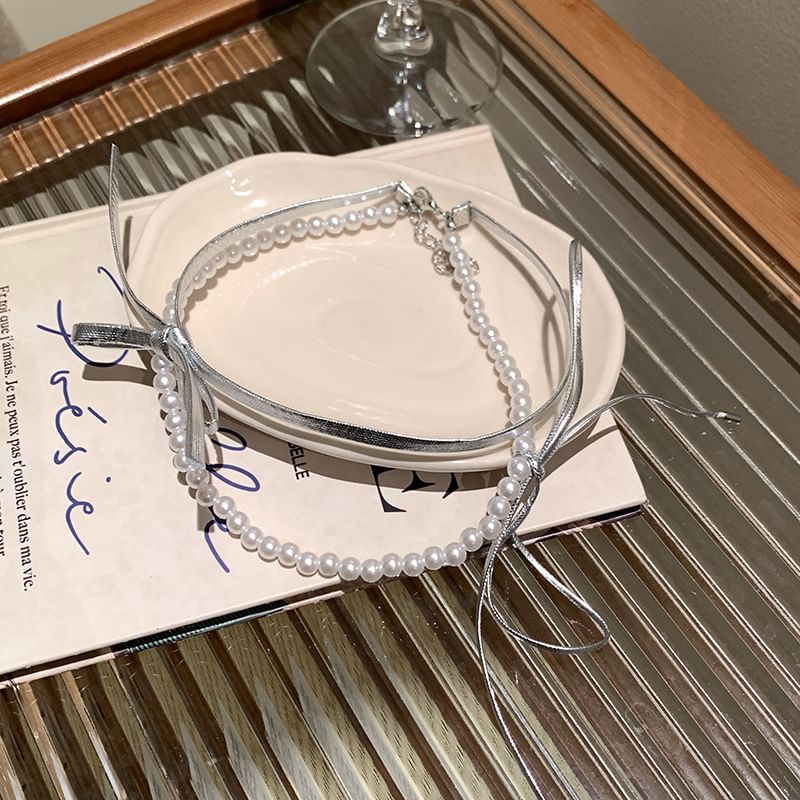| Color: | Faux Pearl & Bow - Silver & White |