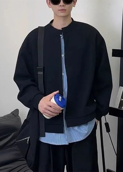 New Black Striped Patchwork Sweatshirts Mens Spring Cotton Button
