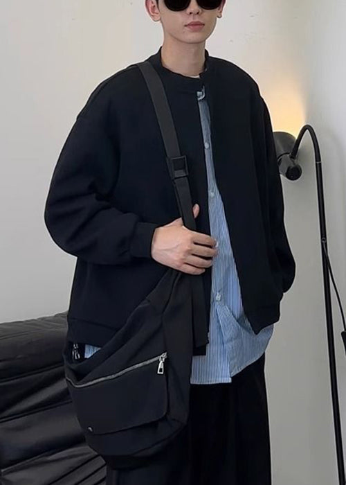 New Black Button Striped Patchwork Cotton Mens Sweatshirts Spring