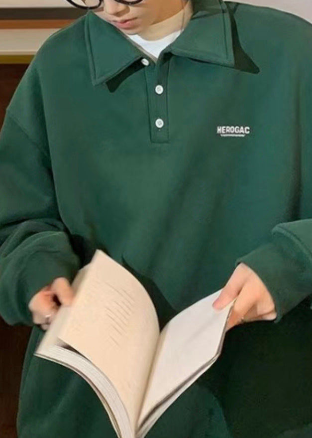 New Men Sweatshirts Print TC024 Cotton Spring Button Green
