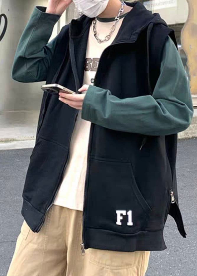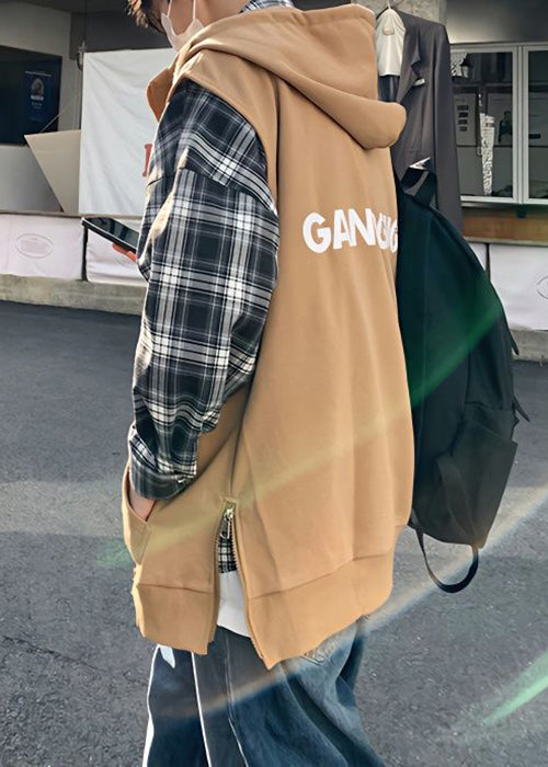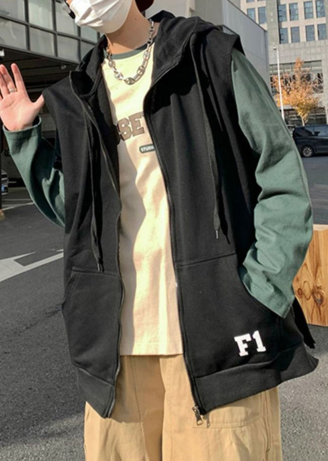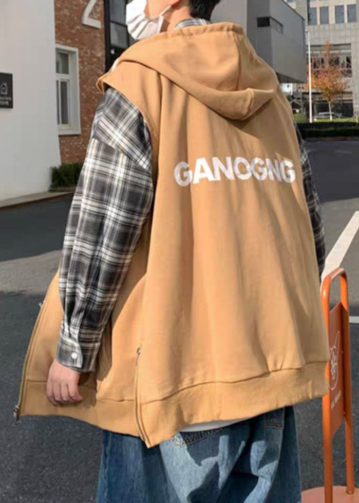 New Khaki Hooded Zippered Letter Cotton Mens Waistcoat Spring RN004
