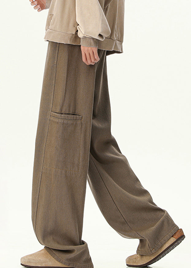 Pants Spring Vintage Pockets Men Design Denim Original Coffee