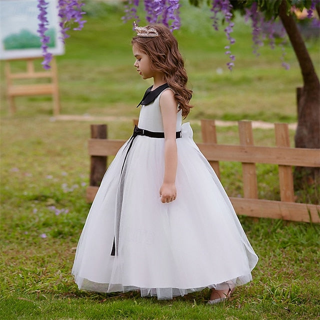 Gender: Girls', Age Group: Kids, Style: Sweet, Beautiful, Occasion: Birthday, Party, Performance, Wedding, Kids Apparel: Party Dress, Fabric: Polyester, Pattern: Color Block, Sleeve Length: Sleeveless, Design: Tie Knot, Age: 4-12 Years, Look After Me: Hand wash, Season: Summer, Neckline: Lapel, Dresses Type: Party Dress, Tulle Dress, Swing Dress, A Line Dress, Fit Type: Regular Fit, Dress Length (cm): Maxi,