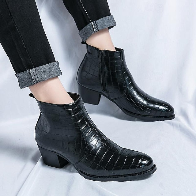 Men's Brown Crocodile Pattern Faux Leather Ankle Boots -