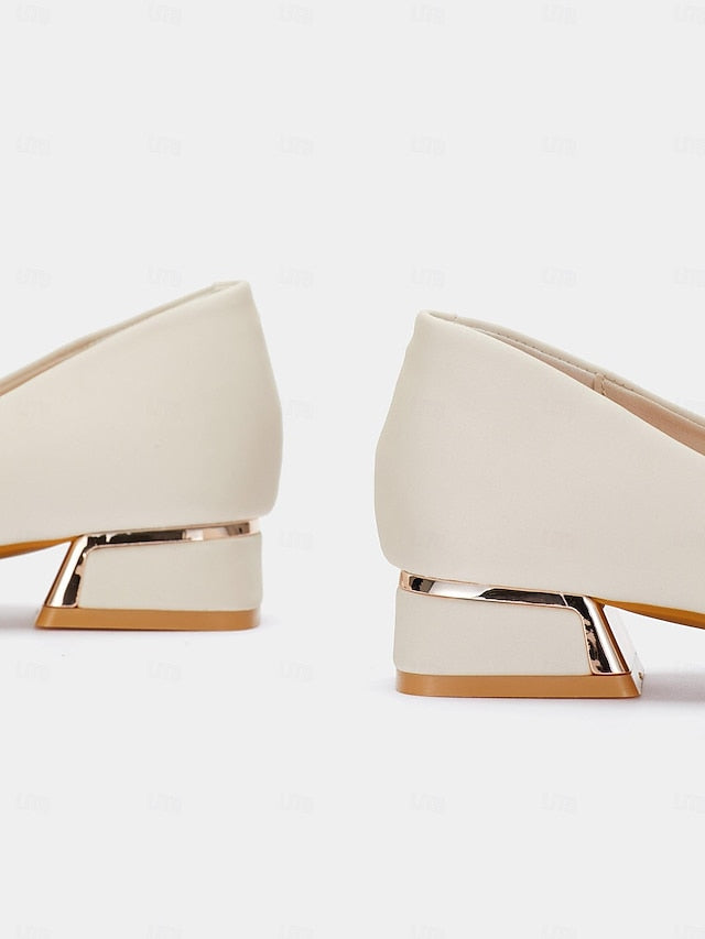 Women's Pearl Embellished Low Heel Flats - Elegant Pointed