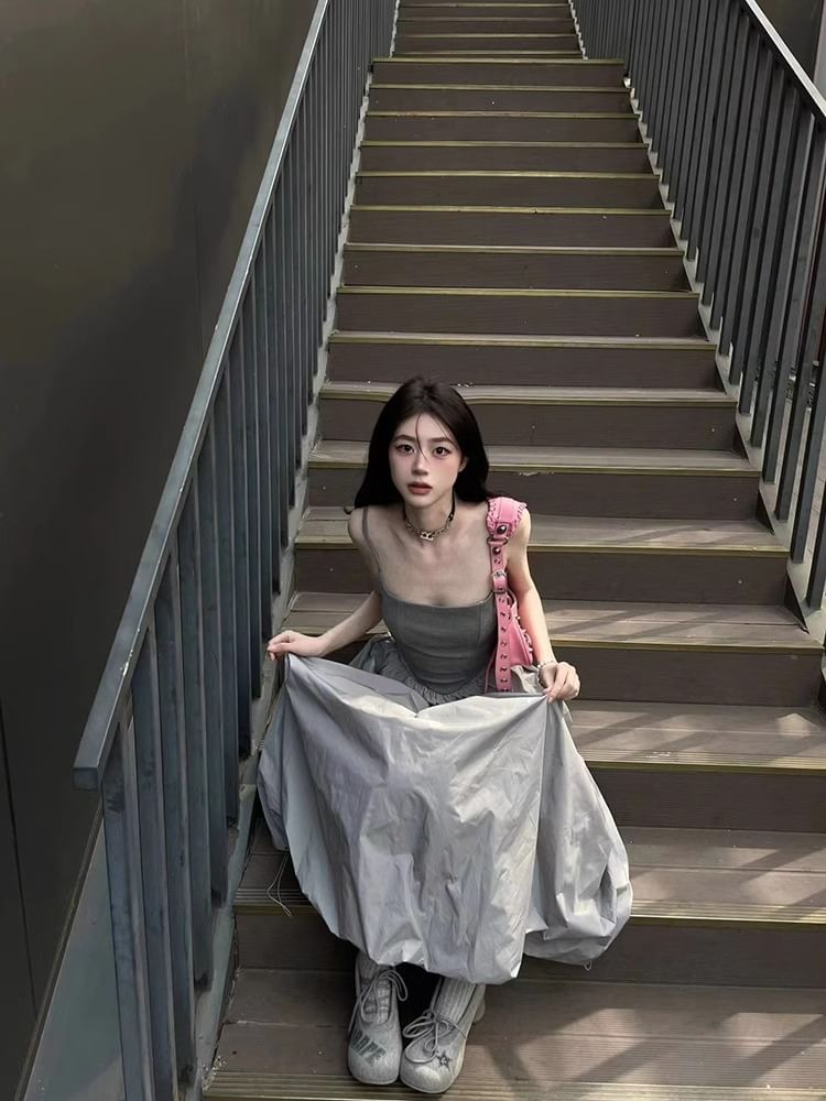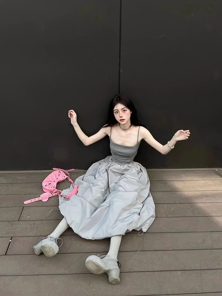 Plain Cami Top / High Waist Maxi A-Line Skirt / Set