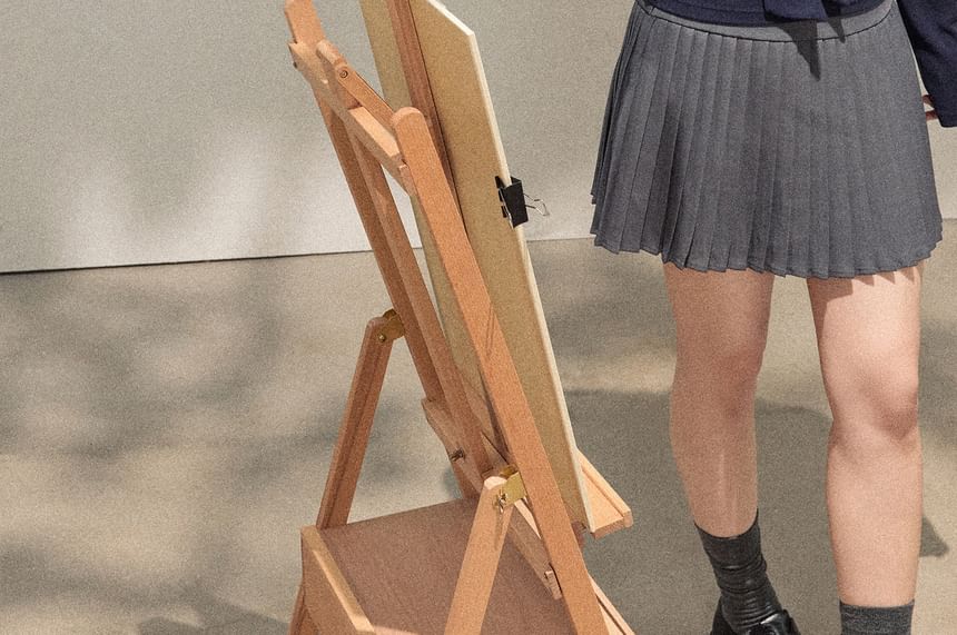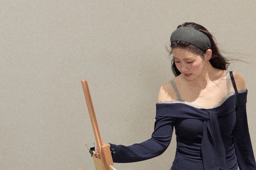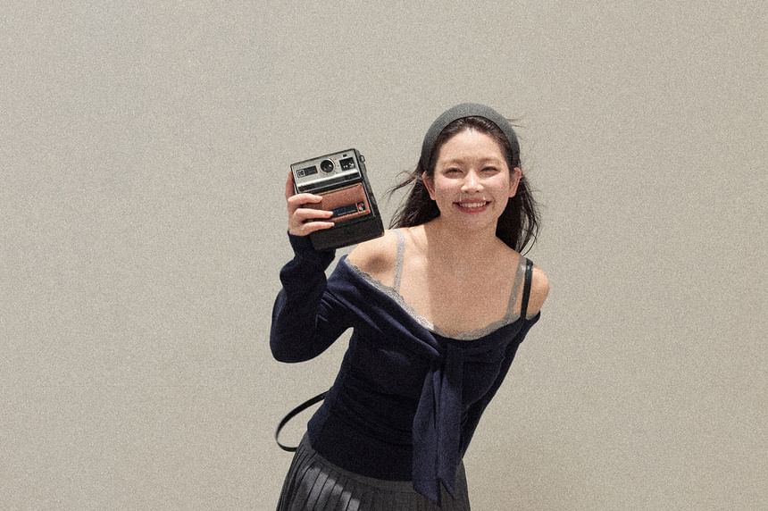 Plus Size Long-Sleeve Off Shoulder Plain Top / High Waist Mini Plain Skirt