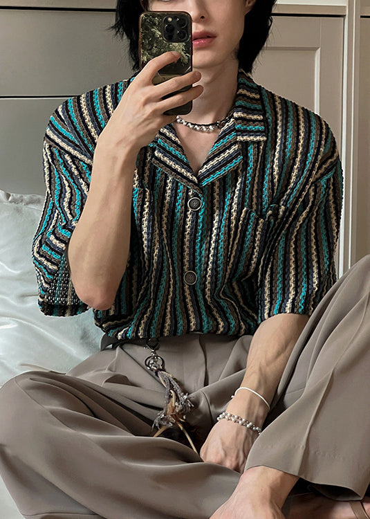 Fashion Striped Button Pockets Cotton Mens Shirts Summer